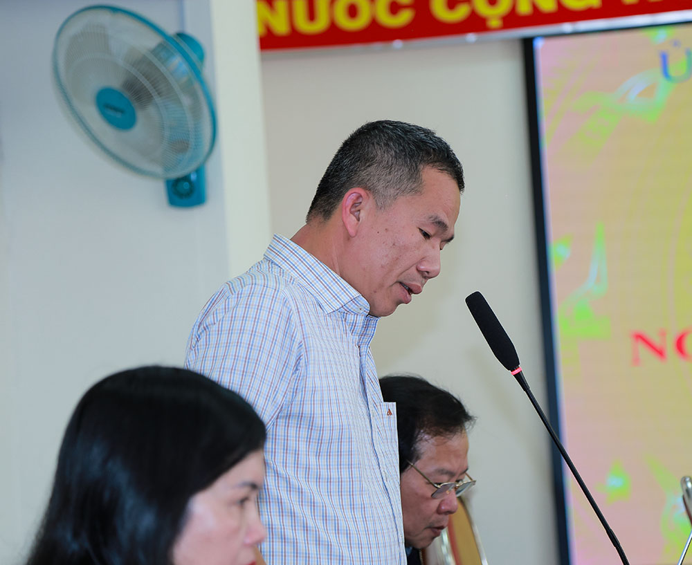 Ông Nguyễn Thành Phi, Trưởng phòng KHTC Sở Giáo dục và Đào tạo phát biểu ý kiến