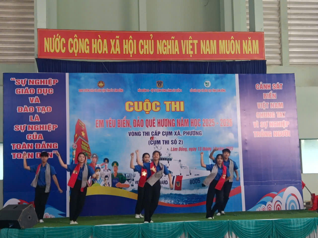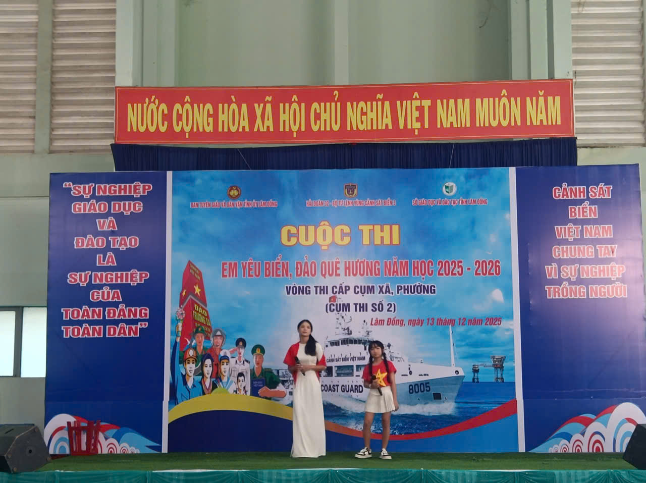 Sáng nay, ngày 13/12/2025 Sở Giáo dục và Đào tạo tỉnh Lâm Đồng cùng Hải đoàn 32 - Bộ Tư lệnh Vùng Cảnh sát biển 3 tổ chức Vòng thi trực tiếp Cụm 2 Cuộc thi “Em yêu biển, đảo quê hương” trên địa bàn tỉnh Lâm Đồng năm học 2025 – 2026 tại Nhà thi đấu Trung tâm Văn hóa - Thông tin và Thể thao, Phường La Gi, tỉnh Lâm Đồng. Cụm 2 có 100 học sinh xuất sắc vòng thi trực tuyến của các xã, phường: Tiến Thành, Tân Thành, Tân Hải, La Gi, Phước Hội, Sơn Mỹ, Phú Quý.